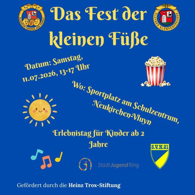 Die Anmeldung für das Fest der kleinen Füße, das am 11. Juli 2026 von 13 bis 17 Uhr auf dem Sportplatz am Schulzentrum stattfindet, ist jetzt offen!